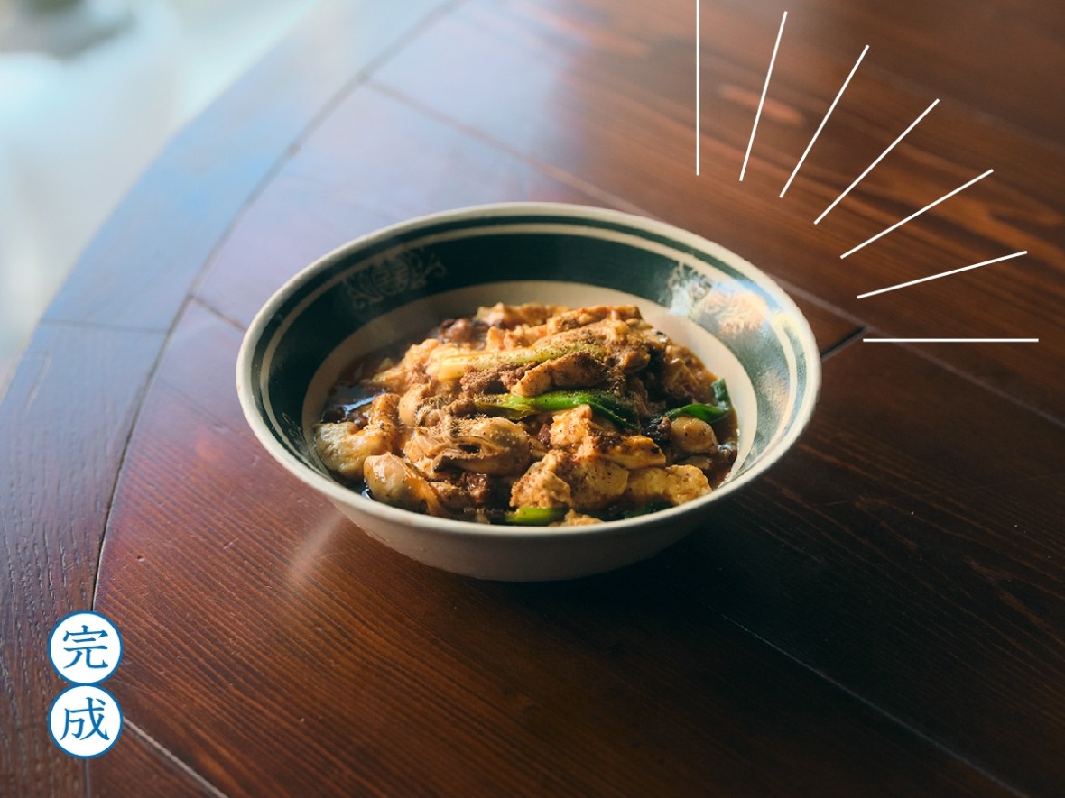「鉄分、ビタミンが豊富な牡蠣、動物性タンパク質のひき肉、植物性タンパク質の豆腐など、一品でたくさんの栄養素を摂ることができる一皿。牡蠣の代わりに白子を入れるのもおすすめです! 麻婆豆腐はかんたんにつくれるのに、一品で食卓が華やかになります」。